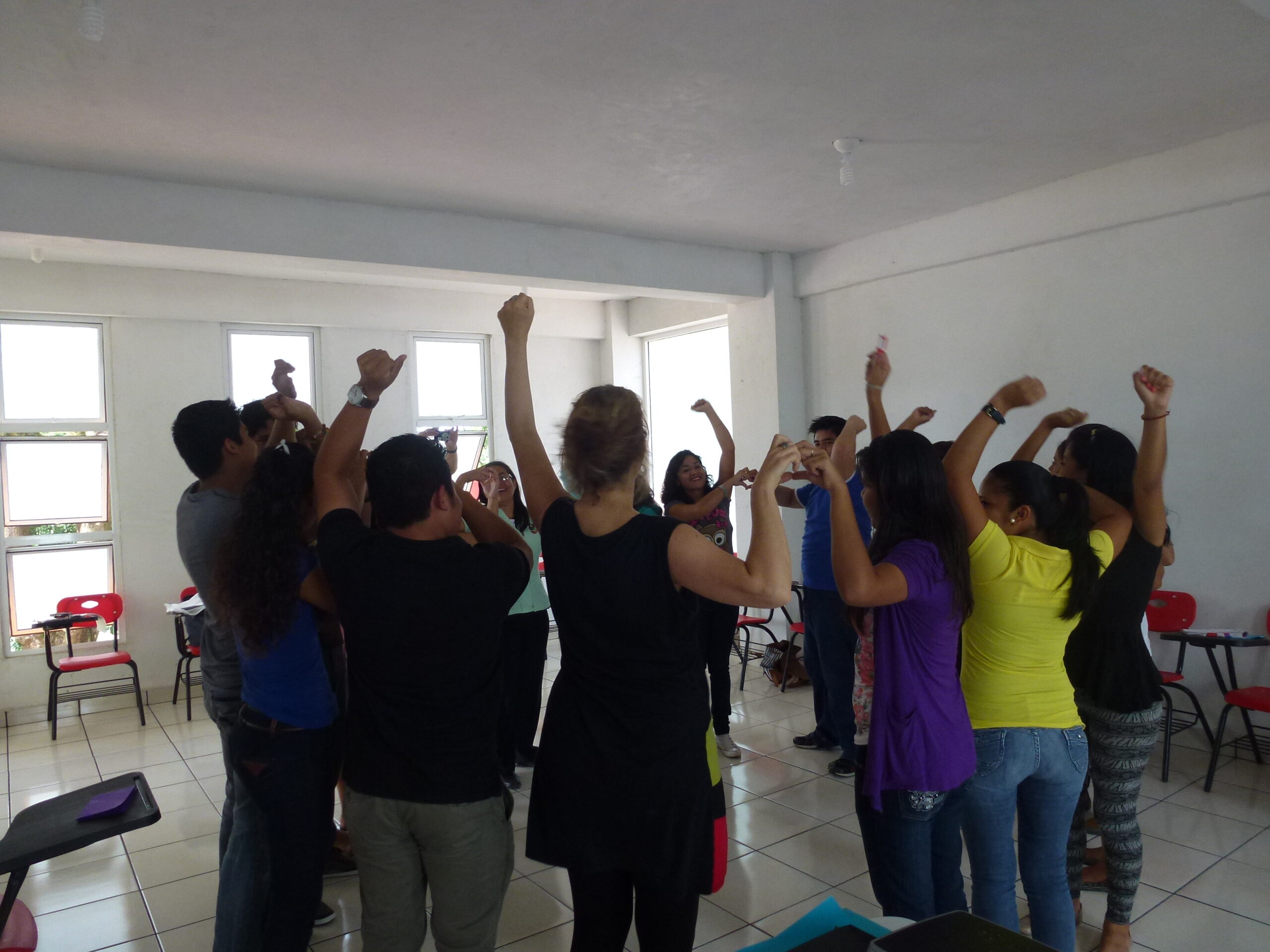 I per culminar, dos dies després, res millor que una acció lúdica a través de minitallers diferents per reflexionar sobre equitat de gènere, respecte, por al canvi, etc i sensibilitzar a més de 60 estudiants de la universitat de Villaflores.