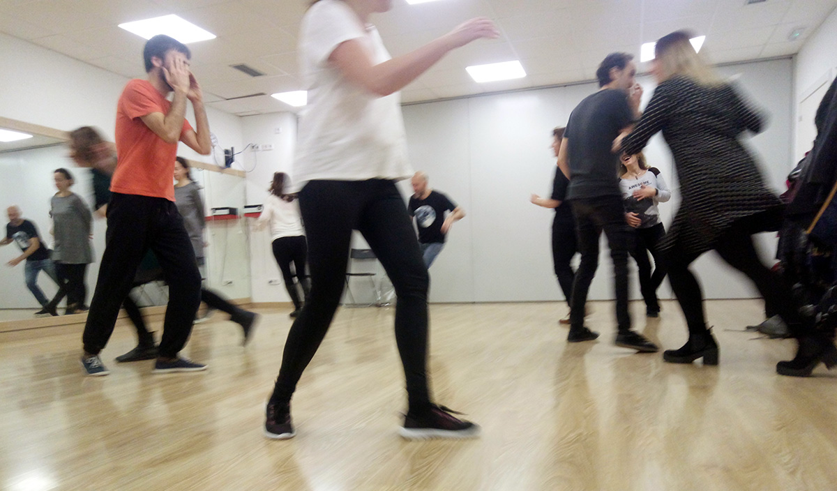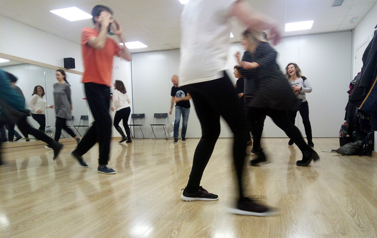 Tener o no tener conocimientos previos de baile de swing fue lo de menos, ya que priorizamos el movimiento libre y espontáneo de los participantes. Para mí, la música swing nos predispone a tener una actitud abierta y relajada, y por lo tanto es ideal para hacer este tipo de trabajo.