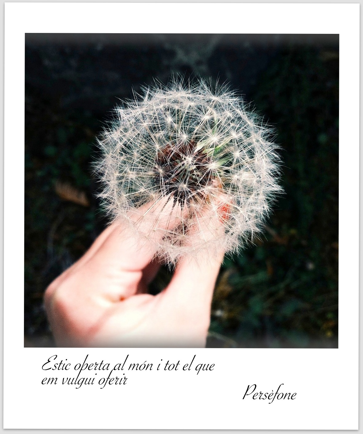 Però… quan em sento vulnerable connecto amb la meva llibertat. Quan no respecto ritmes, miro profundament al meu voltant. Quan em desconnecto de la màgia, busco racons per a mi. Quan em costa connectar-me amb els altres, obro els ulls al món. Quan em perdo, em miro a dins, escolto el meu cor, connecto amb la meva força… i em trobo.