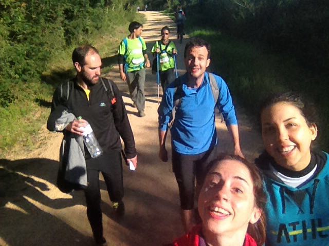 En aquell punt de control, que semblava més un hospital de guerra per les cares i la manera de caminar dels participants, vaig decidir connectar-me amb el grup des de les seves necessitats, vaig entendre que la meva funció era servir, ajudar, motivar, fer riure, cuidar i sobretot que es sentissin importants per tot el que estaven fent. Caminar 30 km amb ells per la nit va ser una experiència única, estava impressionat de la resistència del grup i que durant els moments més crítics entre tots s’ajudaven per no desistir. Sentia el suport de la Gisela i l’Olga, reconeixia l’esforç i la ràbia d’en Jordi Esqué que va haver de quedar-se a Girona per problemes físics, sentia el dolor dels peus de l’Eli i en Joan, el dolor estomacal d’en Mauro, el genoll de la Rosy i els músculs carregats d’en Jordi, però a la vegada també sentia la força de tots plegats i també el lloc que em pertocava en aquell moment, simplement acompanyar des de la humilitat, des de l’alegria i des de l’admiració i l’orgull de compartir aquell repte amb un equip humà que a cada km es feia més potent.